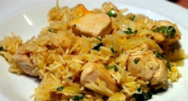 Pilaful cu carne de porc se serveste intotdeauna fierbinte.