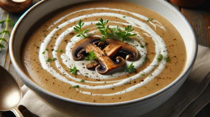 Supa cremă de ciuperci este un fel de mâncare cremos și aromat, care îmbină textura fină a ciupercilor blenduite cu un bogat amestec de arome din legume și condimente. Este o alegere perfectă pentru un prânz sau o cină ușoară, servită fie caldă, fie la temperatura camerei, însoțită adesea de crutoane crocante sau un strop de smântână pentru un plus de textură și gust.