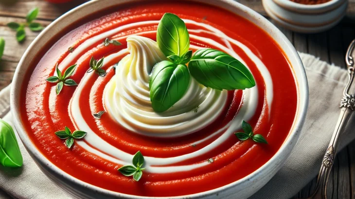 Supa cremă de roșii este un clasic confortabil și iubit, cu un gust bogat și intens de roșii coapte. Este simplă, dar incredibil de aromată, perfectă pentru a fi savurată atât caldă, cât și rece. Această supă cremoasă se poate servi cu crutoane crocante sau un strop de smântână pentru o textură și un gust adăugate.