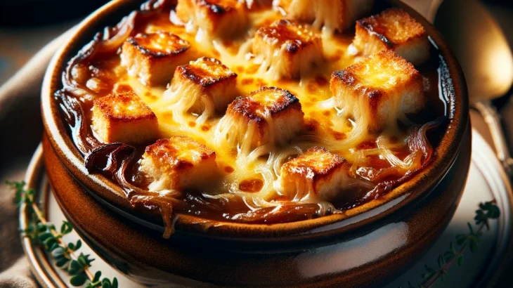 Supa de ceapă franceză este un clasic al bucătăriei franțuzești, celebră pentru gustul său profund și bogat, obținut din caramelizarea lentă a cepei. Această supă este adesea servită cu crutoane de pâine gratinate cu brânză, oferind o textură crocantă și cremoasă care contrastează perfect cu lichidul sărat și aromat. Este o alegere excelentă pentru o cină elegantă sau ca starter într-o masă festivă.