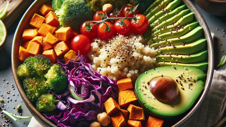 Buddha Bowl cu quinoa și legume asortate este un fel de mâncare vibrant și nutritiv, perfect pentru oricine caută o masă echilibrată și sănătoasă. Această rețetă combină baza bogată în proteine de quinoa cu o varietate de legume colorate și crocante, toate îmbogățite cu un dressing aromat de tahini. Este o opțiune ideală pentru prânz sau cină, oferind un amestec satisfăcător de texturi și arome.