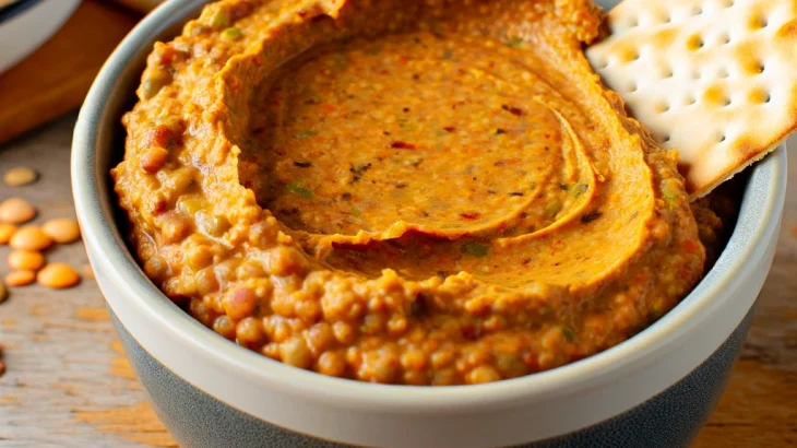 Pateul vegan de linte roșie este o alternativă sănătoasă și delicioasă la pateurile tradiționale pe bază de carne. Preparat din linte roșie gătită, ceapă, usturoi și un amestec de condimente, acest pateu este cremos, bogat în arome și perfect ca aperitiv sau gustare. Serviți-l pe pâine prăjită, crackers sau ca umplutură pentru sandvișuri.